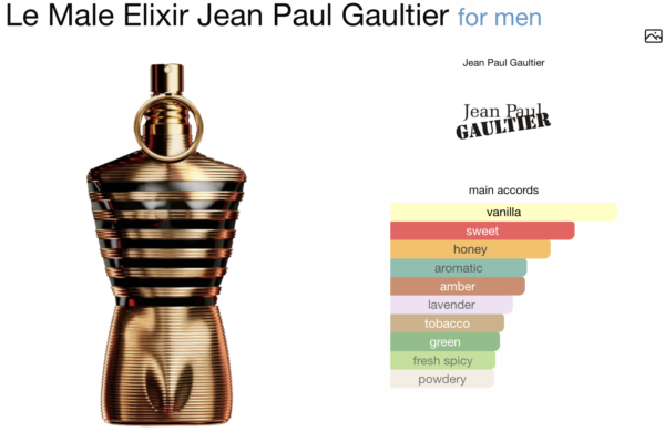 Le Male Elixir by Jean Paul Gaultier is a Oriental Fougere fragrance for men. Le Male Elixir was launched in 2023. The nose behind this fragrance is Quentin Bisch. Top notes are Lavender and Mint; middle notes are Vanilla and Benzoin; base notes are Honey, Tonka Bean and Tobacco.
