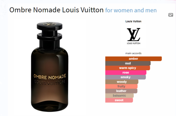 Ombre Nomade by Louis Vuitton is a Oriental Woody fragrance for women and men. Ombre Nomade was launched in 2018. The nose behind this fragrance is Jacques Cavallier Belletrud.